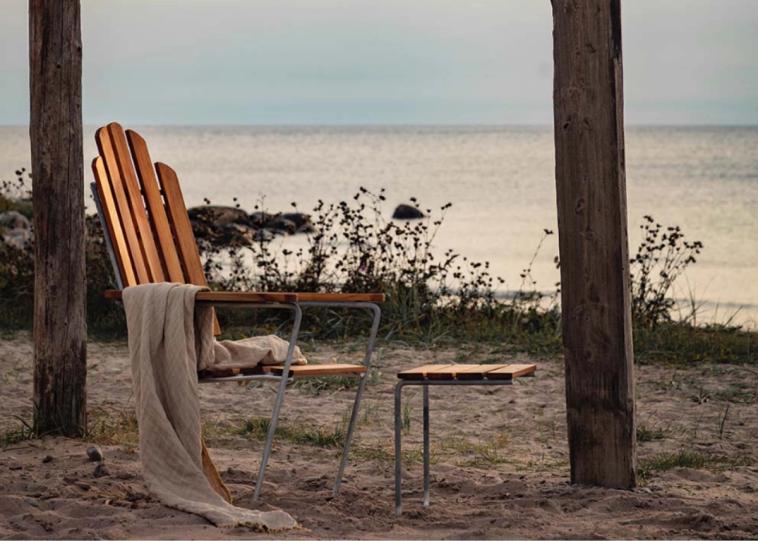 Två solstolar modell A6 från Grythyttan. Det karaktäristiska Grythyttegunget i denna stol har tydligen aldrig känts bättre.